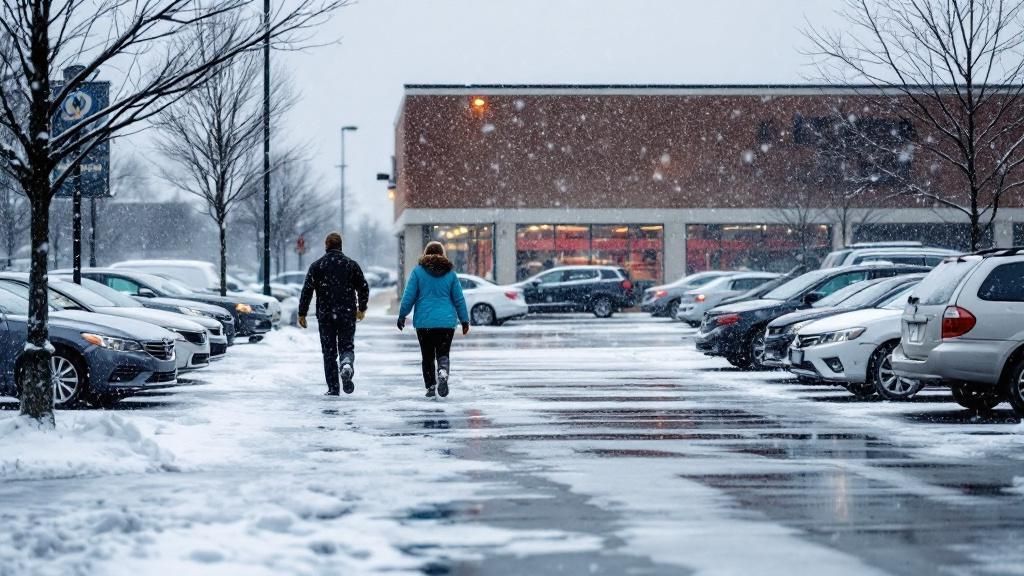 Winter conditions create some of the highest liability risks for commercial property owners. Ice-covered parking lots, walkways, and drive lanes